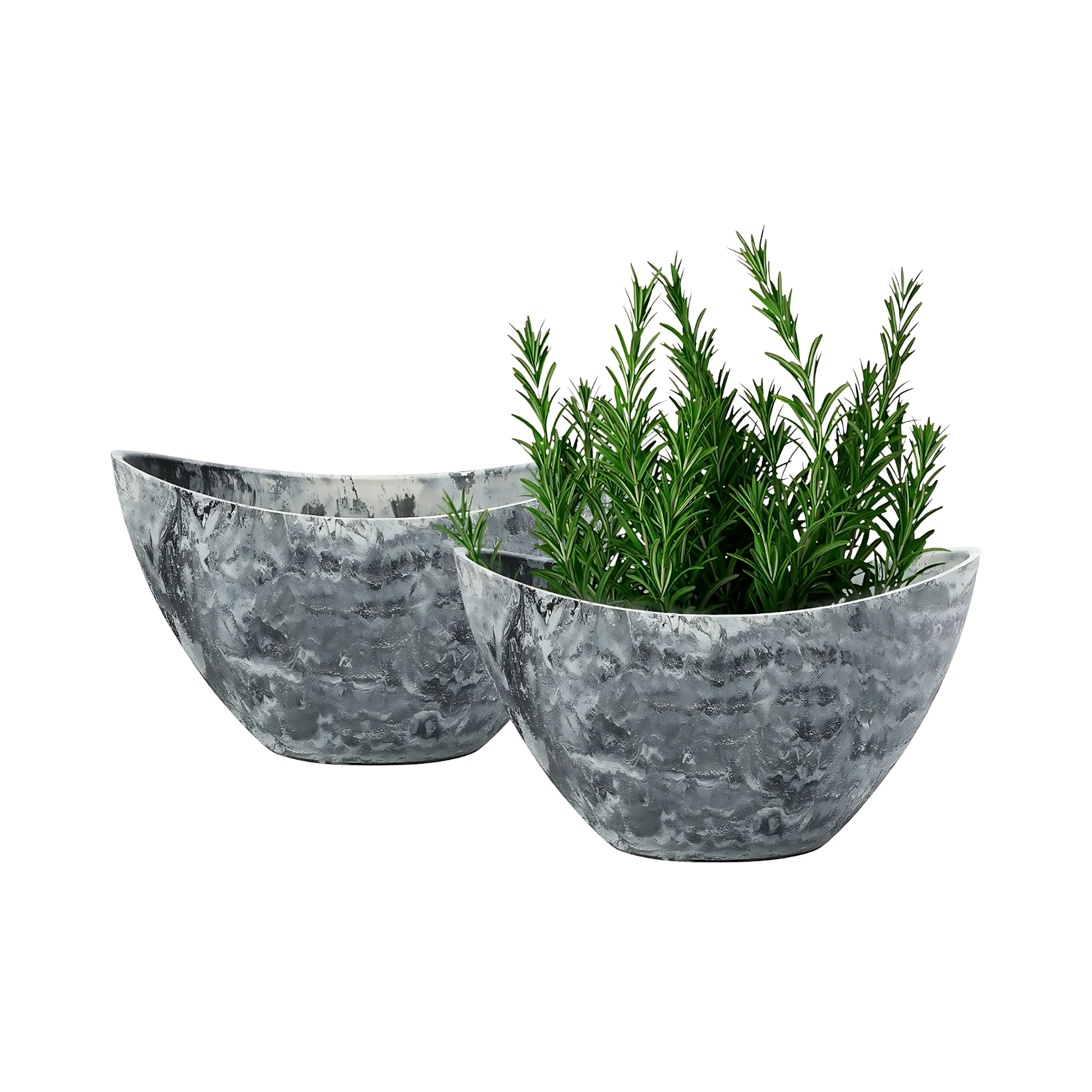 Large Grey Plant Pots with Drainage for Indoor Outdoor Planters